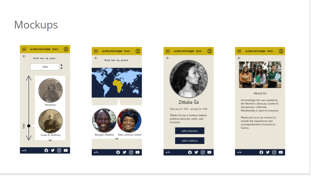 Looking at available websites that include women’s contributions to history, I noticed that many websites are devoted to history and have a page for women, but it is rare to have a website devoted solely to women. In addition, websites that feature women in history do not offer a way for users to save the profiles of women or keep track of references.